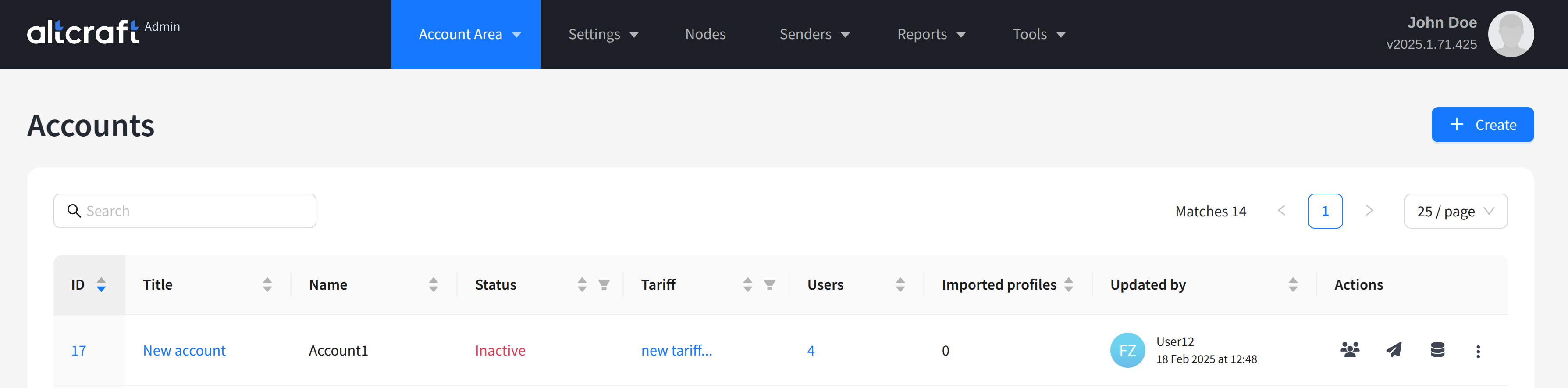 Account is a unified environment for company marketers and related specialists to work with the User Interface of the Altcraft marketing platform.