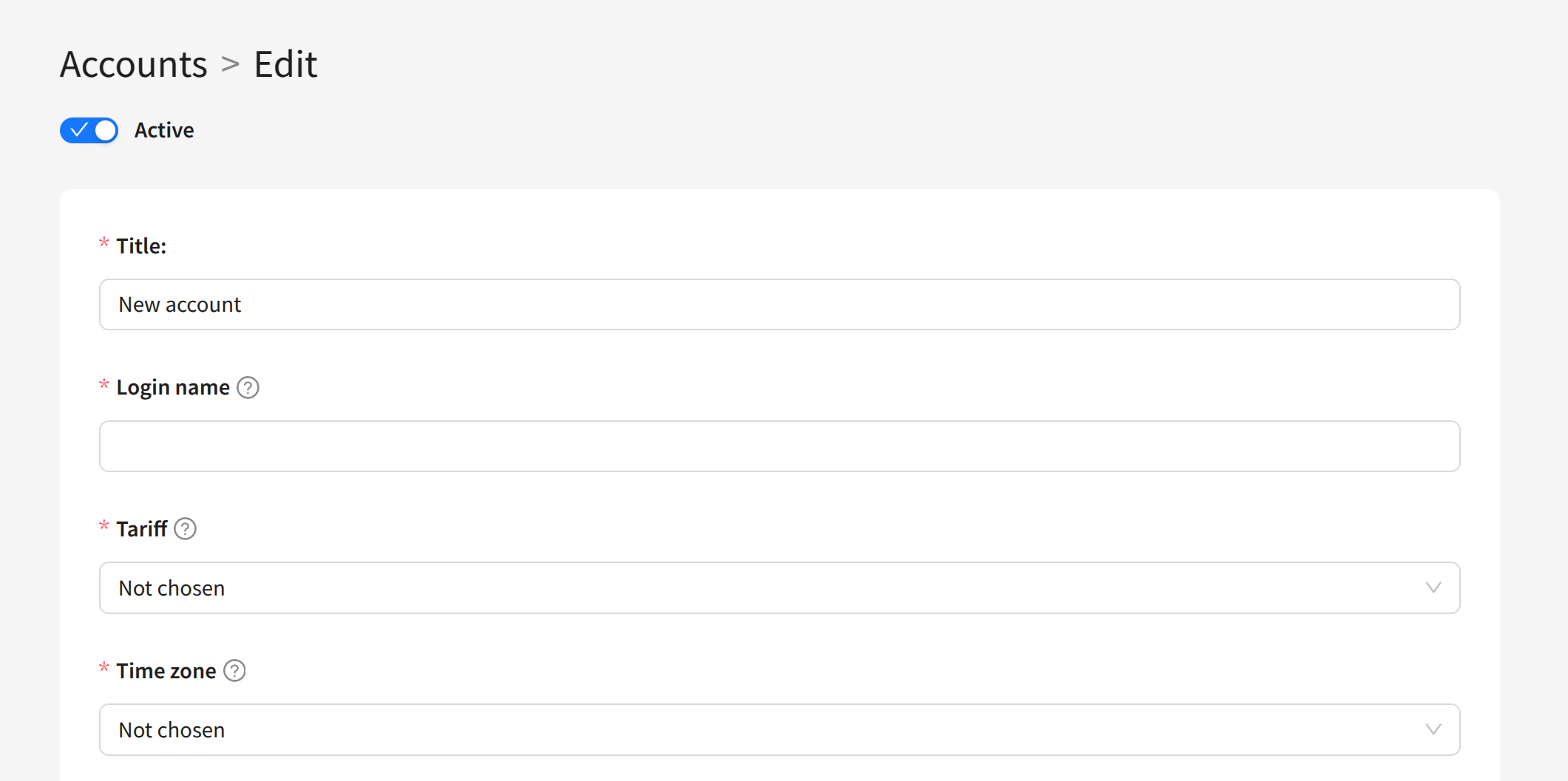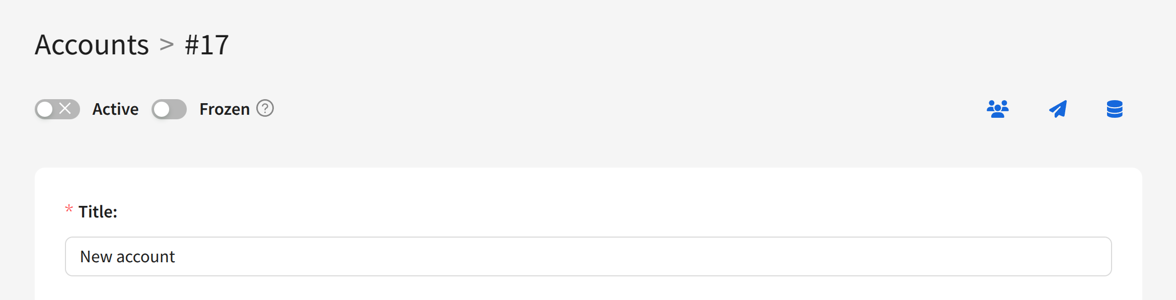 - Activation and deactivation of the account. You can also configure notifications about deactivation to be sent to account users.