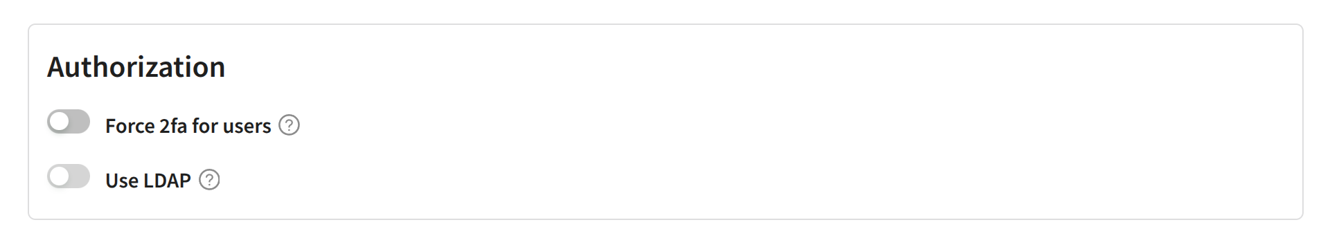 - Force 2fa for users — enable mandatory two-factor authentication for account users.