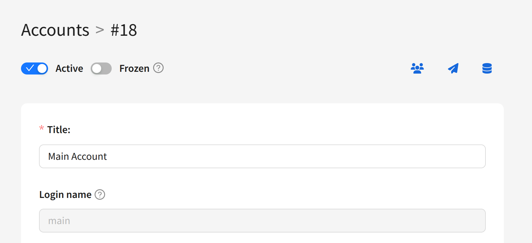 To manage users, in the list of accounts click the quick action button: