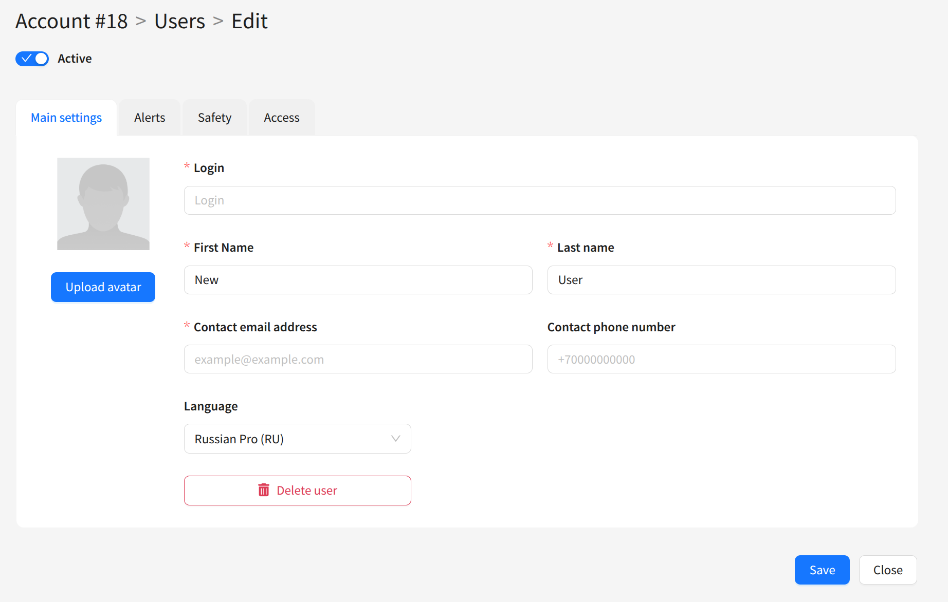 Send an email with access to the user — if enabled, an email with login details will be sent after saving.