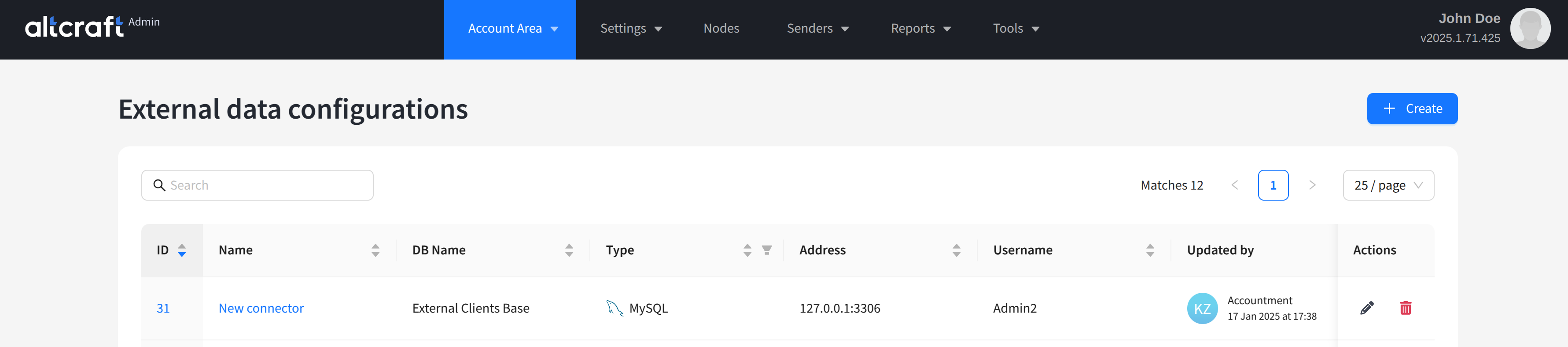 External Data Configuration is an Altcraft platform tool designed for integration with external SQL databases.