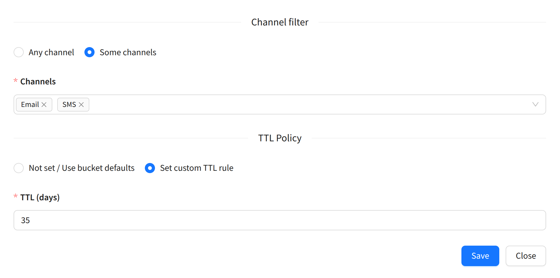 - Not set / Use bucket defaults — use the retention time set for the selected bucket.