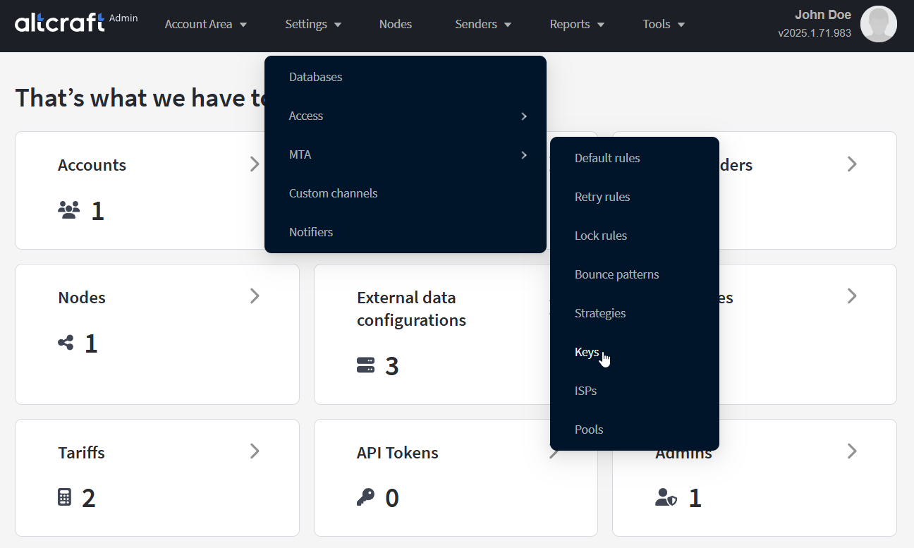 Save the key. Later, you can use it when configuring other entities in the Admin Panel.