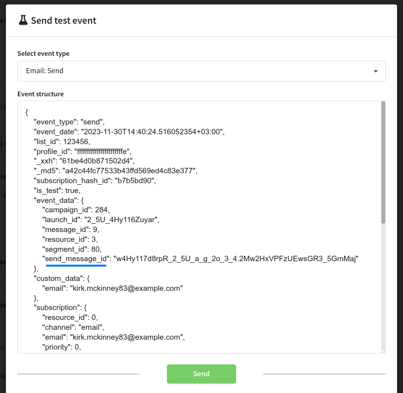 Send Message ID is a unique sending identifier used in the platform. It stores the identifiers necessary to determine the profile and objects within which the message was sent. There are several identifier formats in Altcraft Platform.