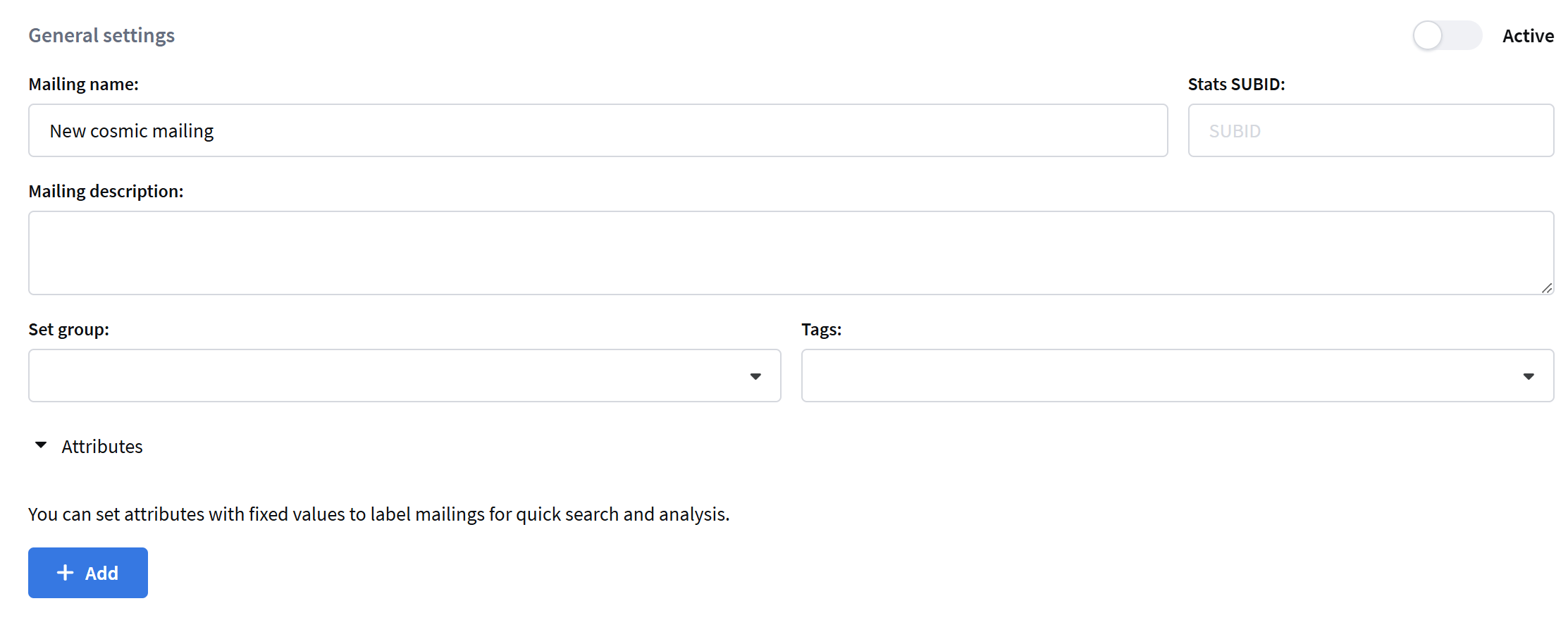 If you want to launch a mailing right after its creation, toggle the appropriate option at the bottom part of the page.