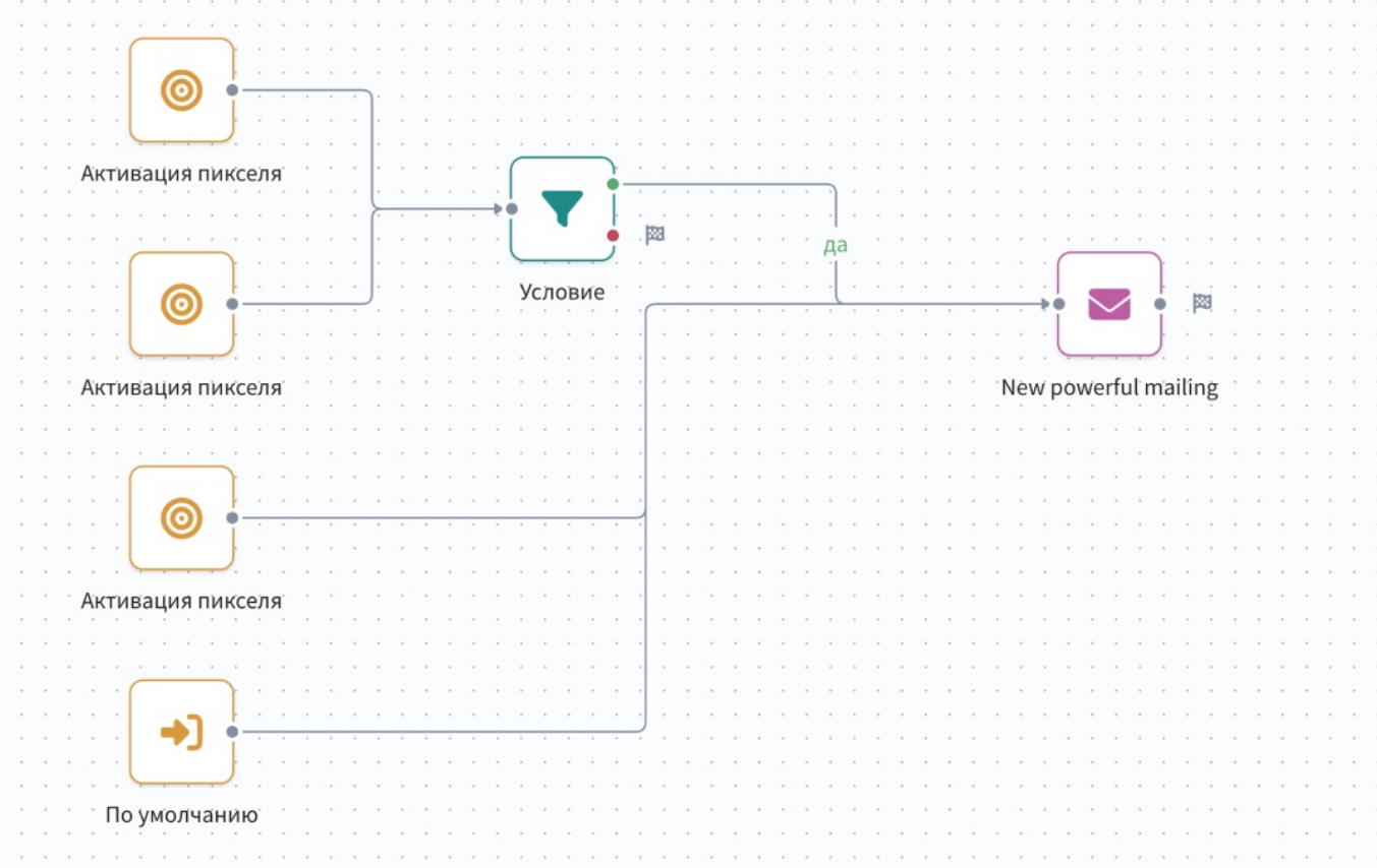 Previously, a scenario supported only one entry trigger per type. Now multiple triggers of the same type can be added, for example, activation of different pixels or profile field updates:
