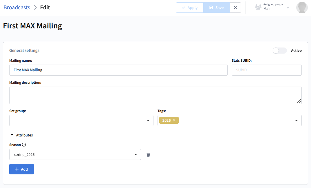 Open the Mailings section and choose the appropriate type of Mailing: broadcast, regular, or triggered.