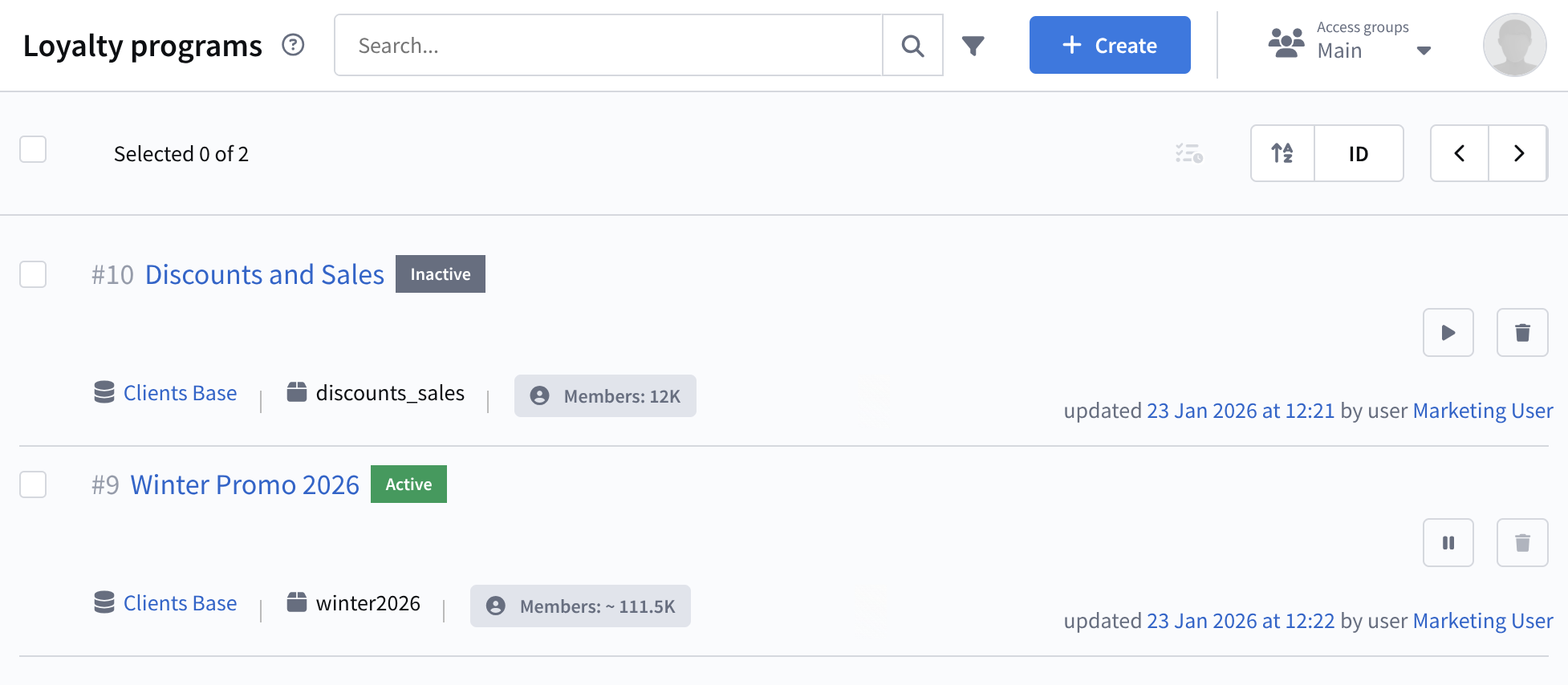 ![]() | To manage loyalty programs, go to Loyalty — Loyalty programs in the main menu. A list of existing loyalty programs will open. To edit a program, click its title. |