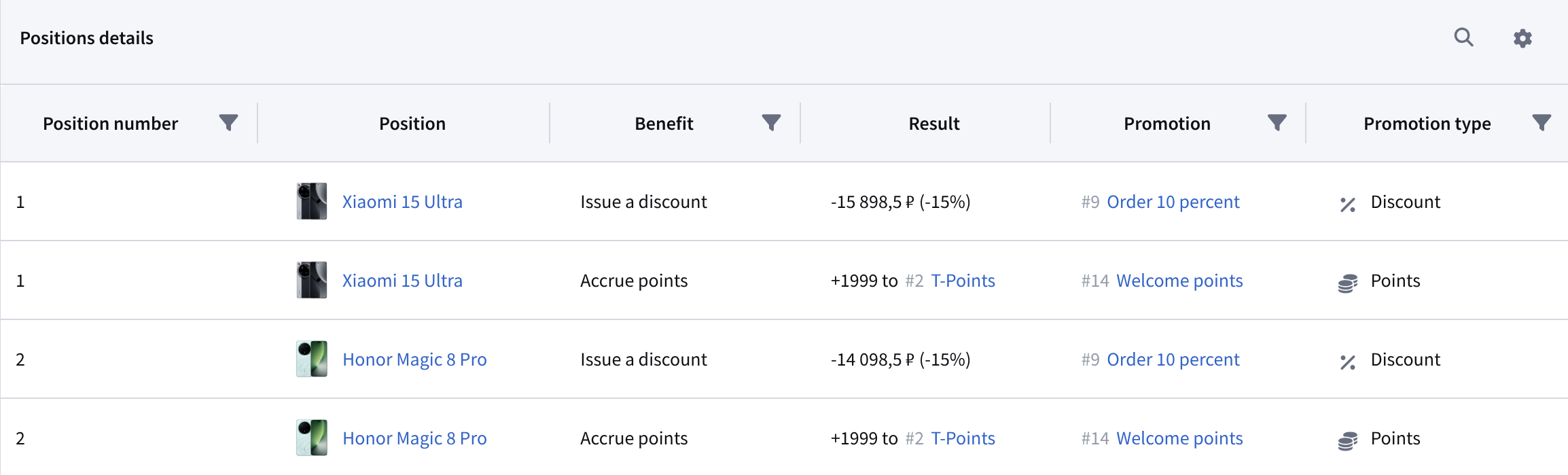 Settings for points promotions: