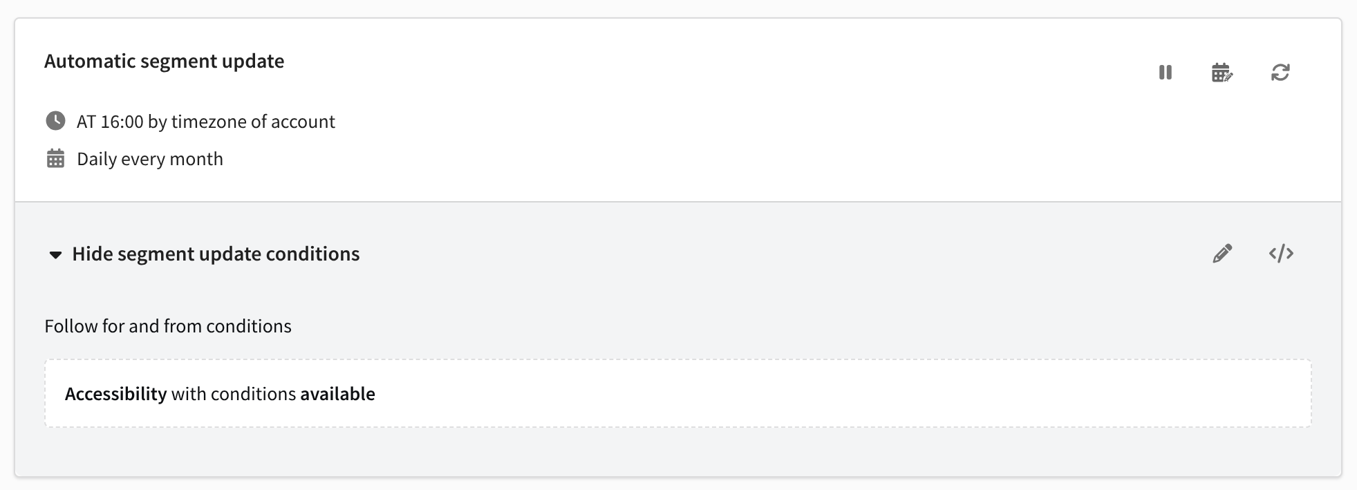 A segment can be updated daily or on specific days. Update time and time zone are set by the user: