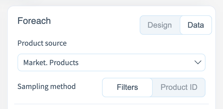 - Market variables — define which elements are displayed in the card: name, price, image, button, etc.