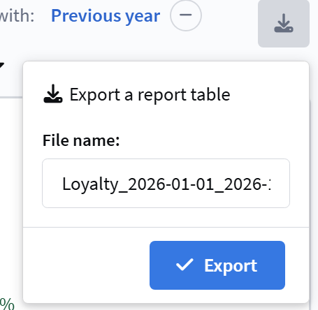 Select a loyalty program, the reporting period, and a comparison period. You can also choose a tiers group, the points type, and the currency.