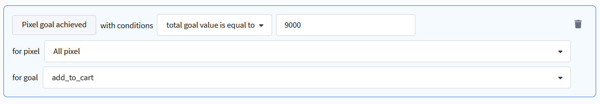 - Total goal value — calculates the sum of the cost of achieved goals. Operators: greater than / less than / equal to. Can be specified for all time, for a period, or for the last [x] days.