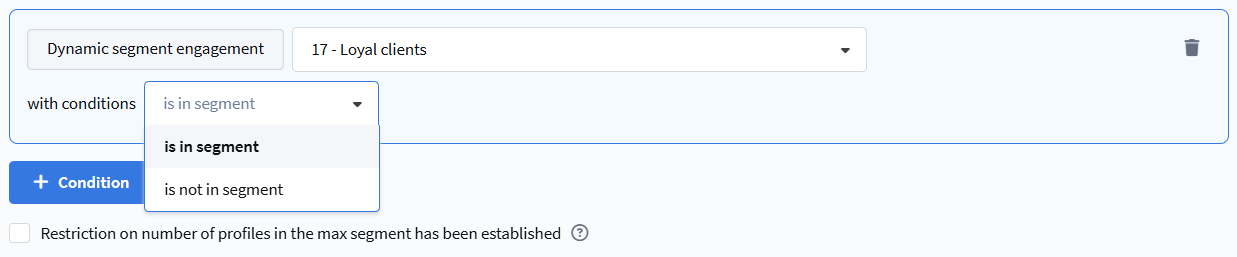 - Is in segment — the profile is included in the selected dynamic segment.