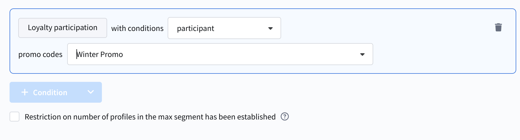 - Participation in a loyalty program — whether the profile is a participant in the selected loyalty program.
