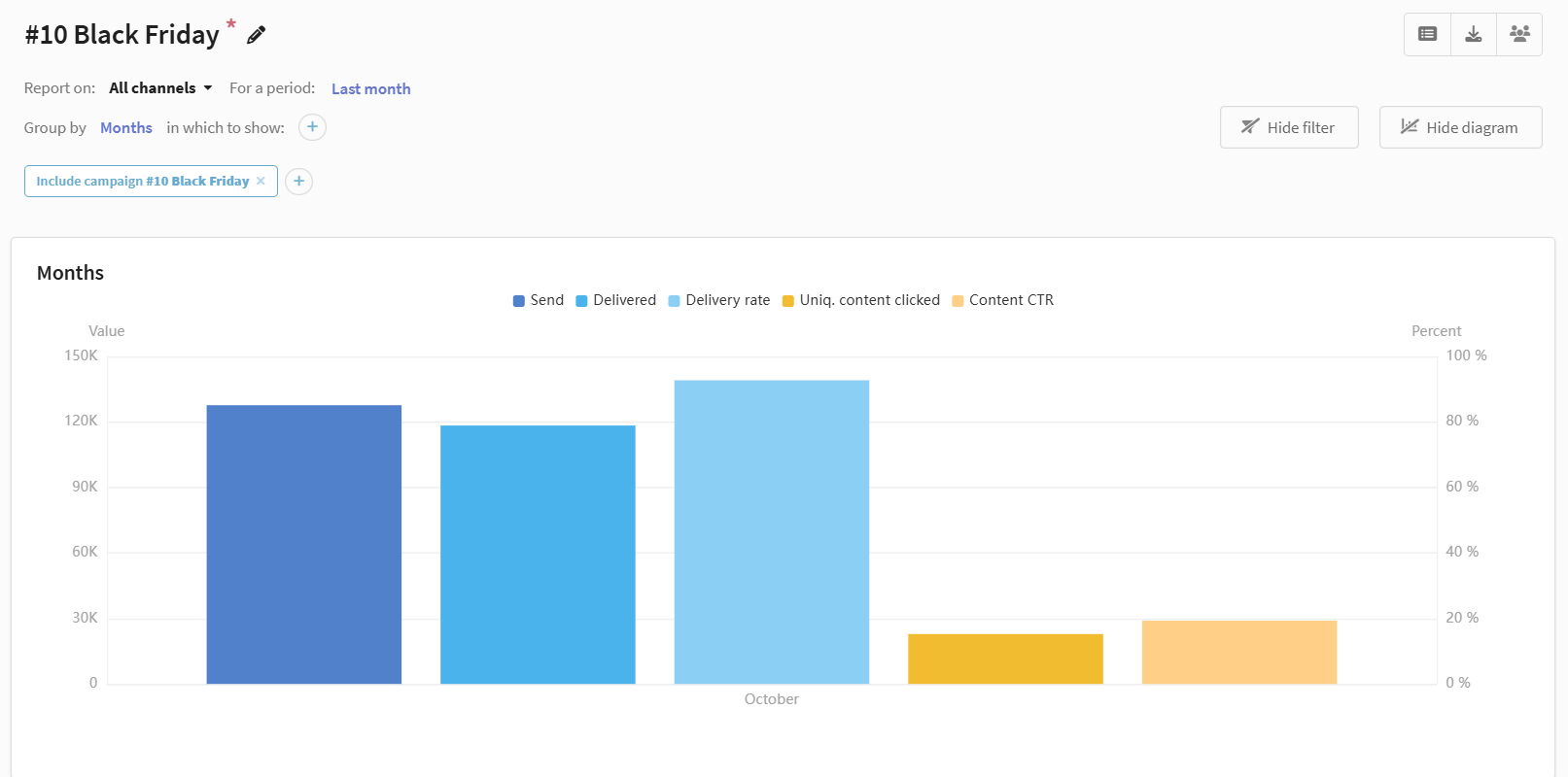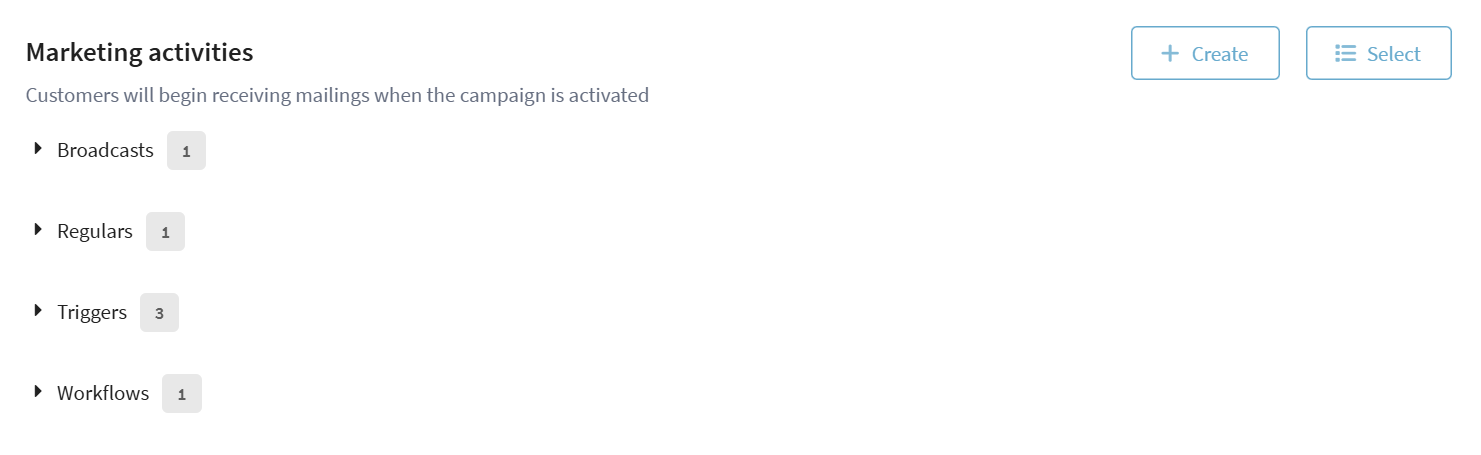Campaigns are a tool for uniting marketing activities into a single strategy and managing them in one place. A campaign can contain broadcasts, regular and triggered mailings, scenarios, A/B tests and placements. You can configure test and control groups, track strategy performance and manage the lifecycle of activities from a single interface: