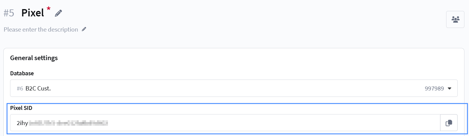Pixel SID is a service string identifier of the pixel. The SID is generated automatically after the pixel is saved and is displayed in the pixel editor. It is used by the platform to register events and is not required for standard website tracking.