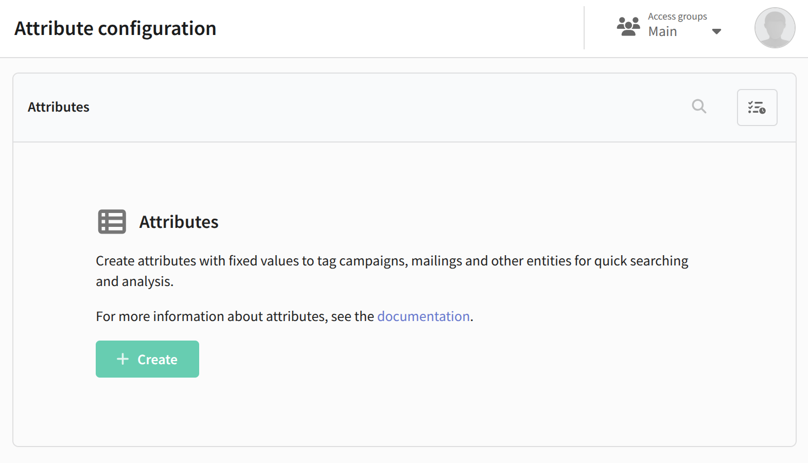 This opens the attribute management panel. Create your first attribute by clicking the corresponding button: