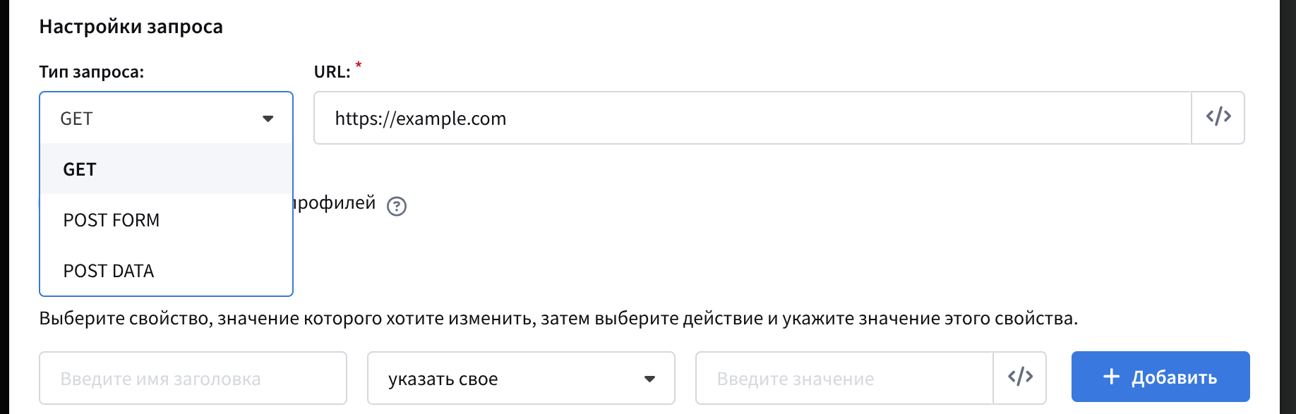 - При отправке профиля в сценарий через API. После сохранения сценария в окне узла отобразится URL, который можно использовать для запуска сценария. Однако рекомендуется использовать более новую версию API. Подробнее в документации.