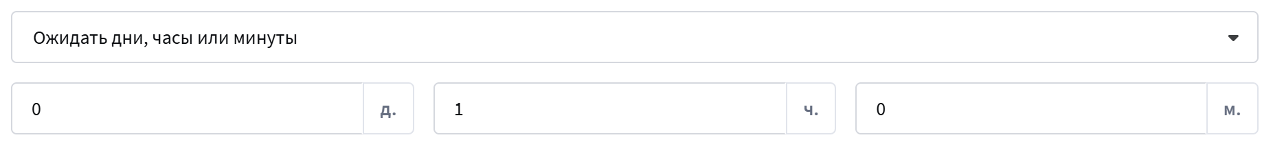 Чтобы ожидать определённое время после захвата профиля клиента сценарием или после выполнения предыдущего действия, выберите вариант "Ожидать дни, часы или минуты":