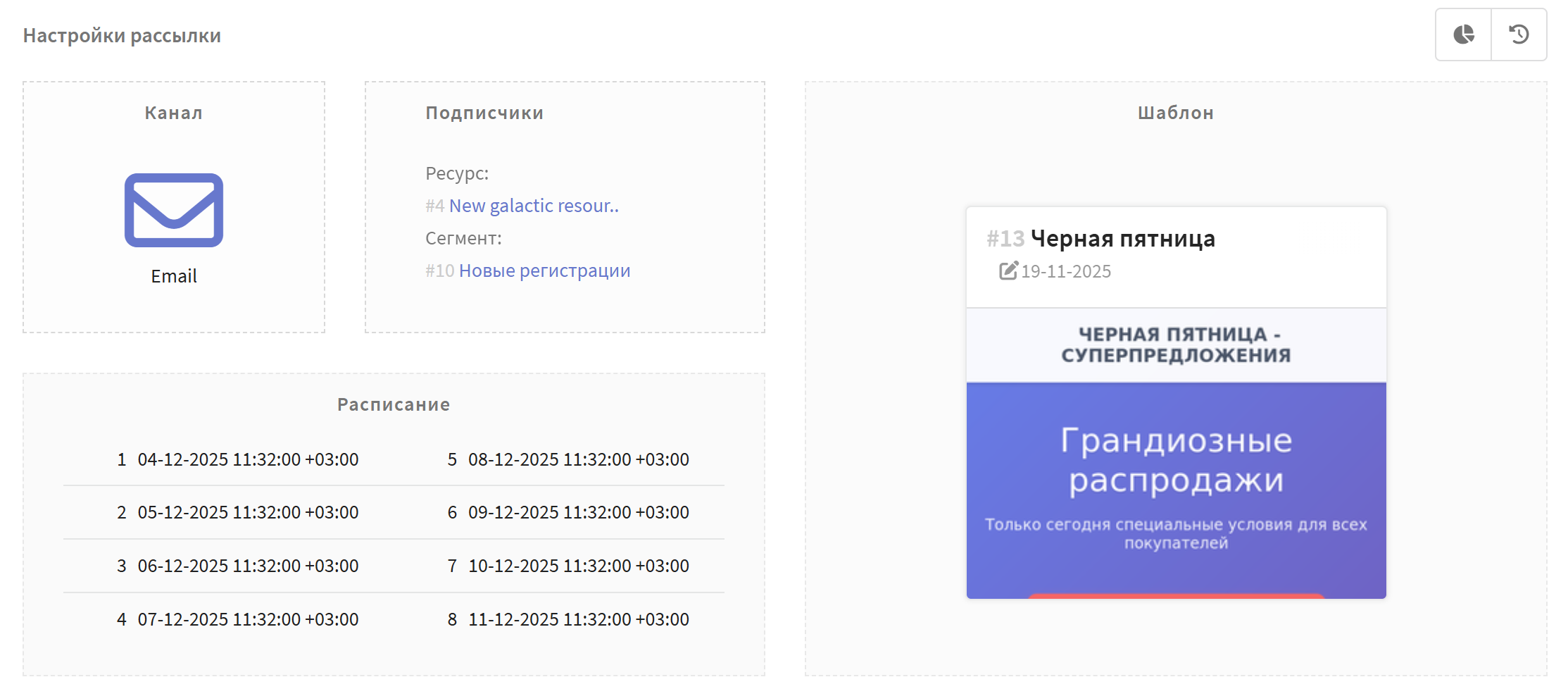 • Расписание рассылок