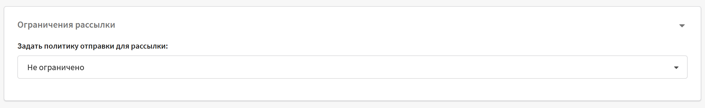 Политика отправки ограничивает коммуникацию с одним подписчиком. Настраивается для рассылки в блоке Ограничения рассылки. По умолчанию рассылка будет использовать политику, выбранную глобально в аккаунте или в Ресурсе, от имени которого отправляется броадкаст.