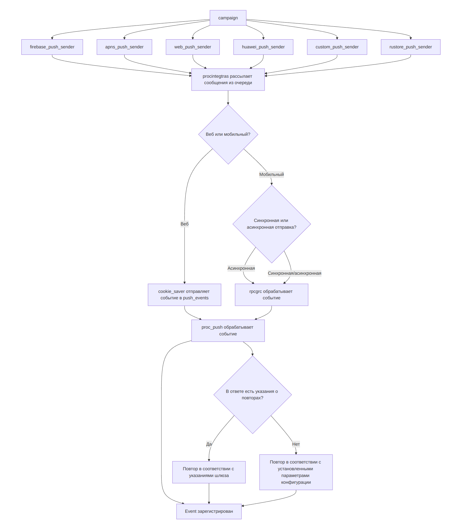 За обработку статуса браузерных веб-пушей отвечает сервис cookie_saver, который отправляет событие в push_events. Дальнейшая обработка происходит в procpush.