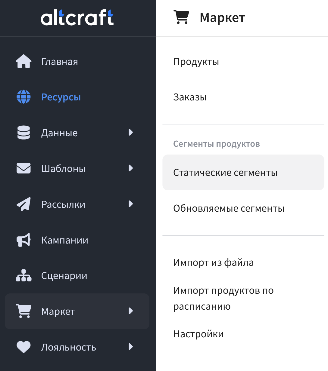 Статические сегменты продуктов — наборы продуктов и их модификаторов (SKU), объединенных в группу через API или вручную при помощи условий отбора.