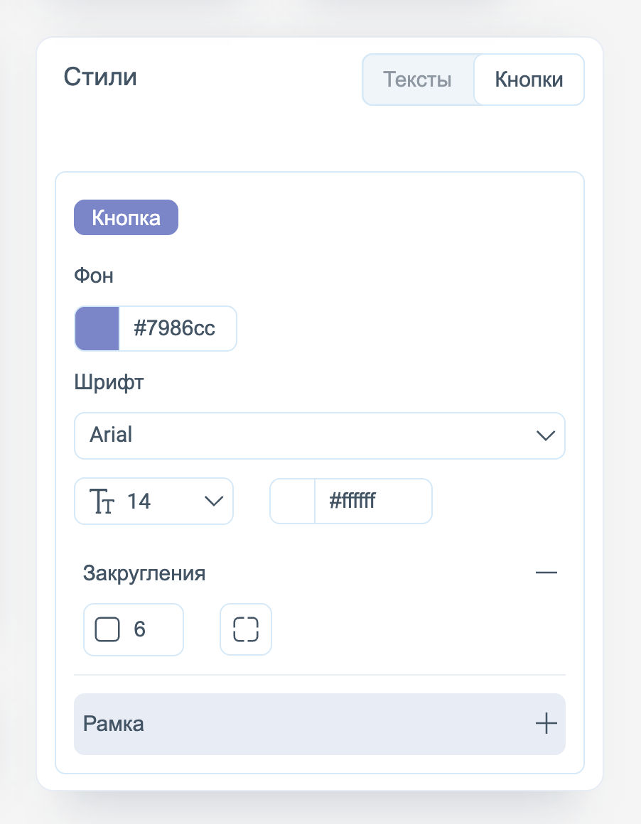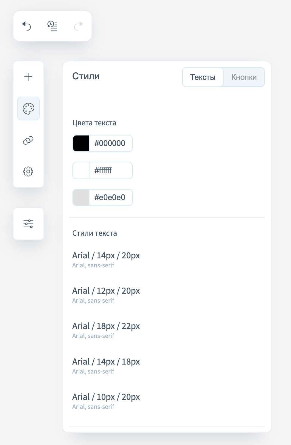 Сохранить единобразие визуальной составляющей и придерживаться одного дизайн-кода поможет раздел "Стили". Здесь можно отслеживать используемые цвета и стили текста внутри блоков и кнопок.