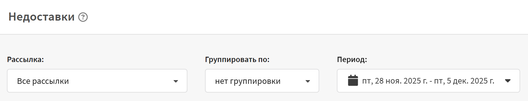 Отчёт по недоставкам предоставляет подробную информацию по Email, SMS, Push, Telegram Bot, MAX Bot, Viber™, WhatsApp* сообщениям, которые не были доставлены получателям по итогам одной или нескольких рассылок. Отчёт поможет выявить и устранить причины недостаточной доставляемости рассылок.