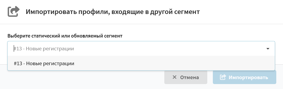 Эта опция позволяет быстро добавить в текущий сегмент все профили из другого существующего сегмента.
