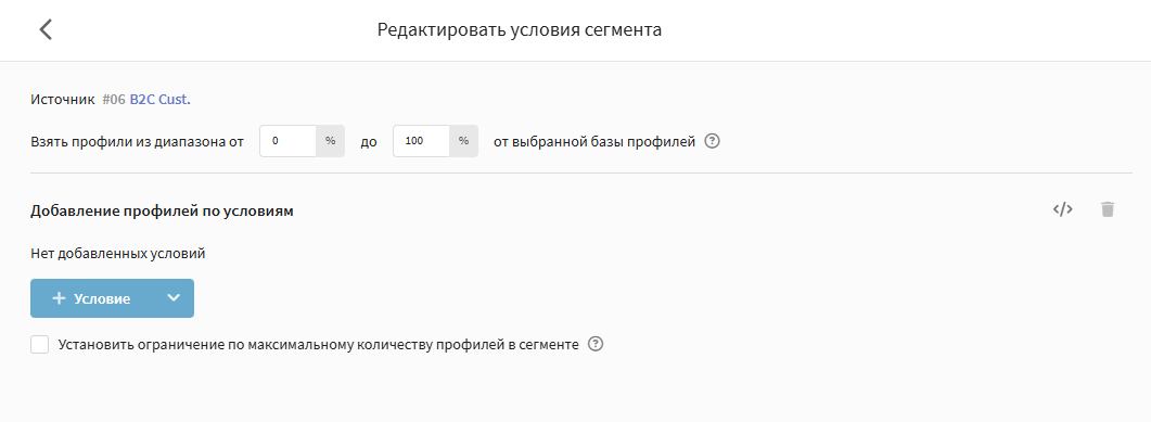 Ограничение по максимальному количеству профилей — лимит профилей, которые могут быть включены в сегмент.