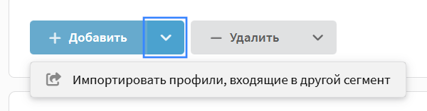 Для импорта профилей из другого сегмента, нажмите на стрелку вниз ▼, она находится рядом с основной кнопкой "Добавить" и в контекстном меню выберите Импортировать из сегмента: