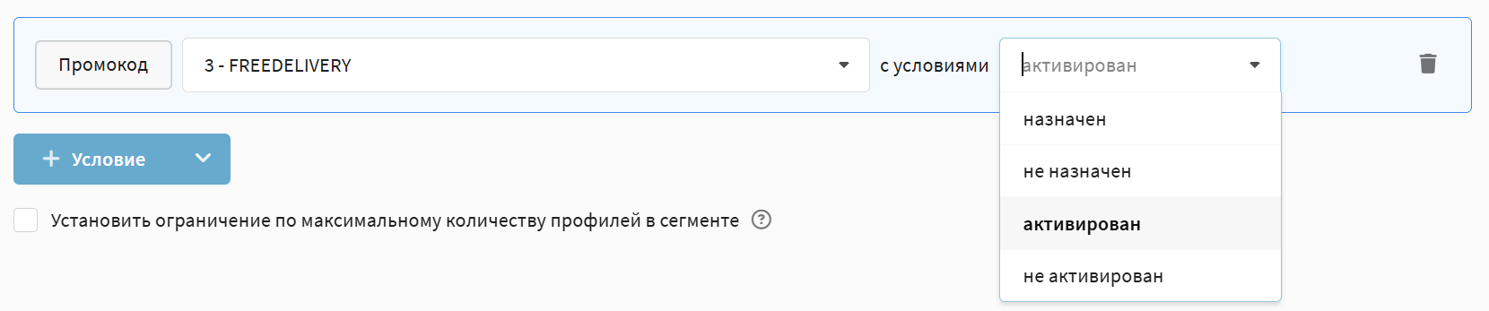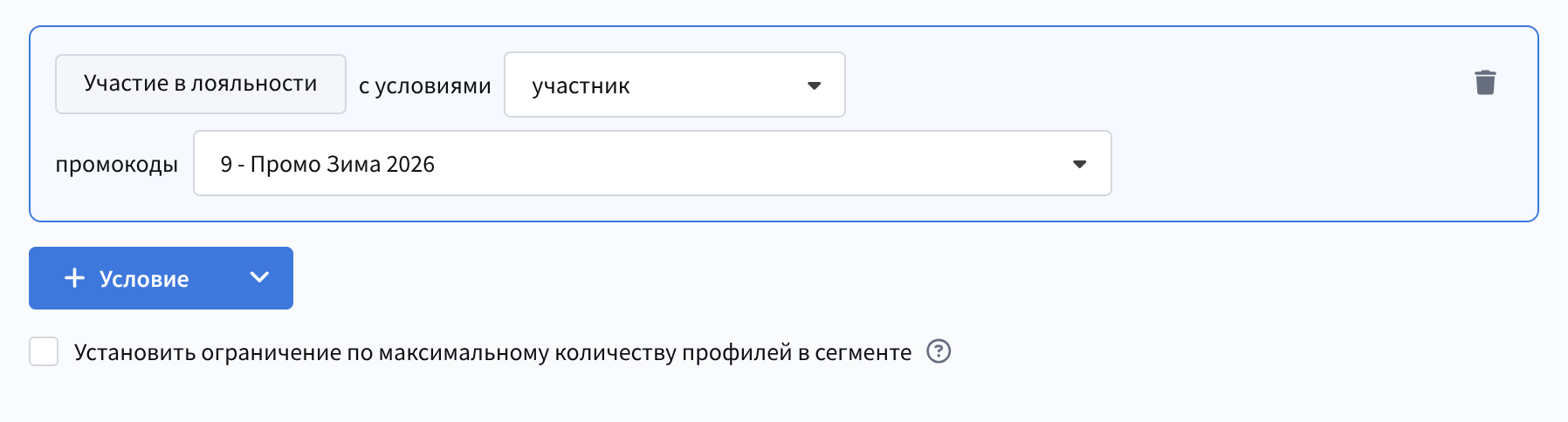• Участие в программе лояльности — является ли профиль участником выбранной программы лояльности.