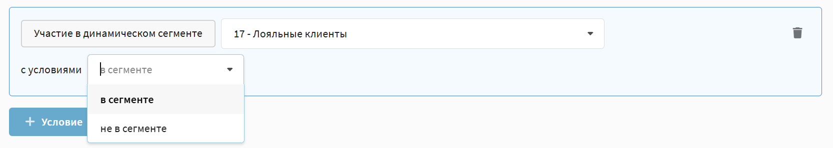 • не в сегменте — профиль не входит в выбранный динамический сегмент.
