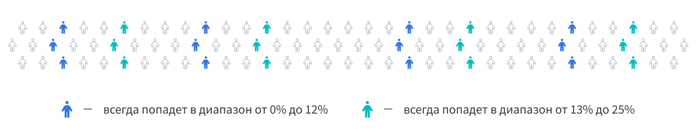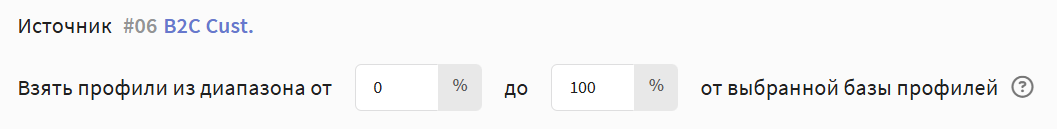 Диапазон определяет, какая часть всей базы будет участвовать в сегментации. По умолчанию он равен 100%, то есть условия применяются ко всем профилям. Главная особенность в том, что диапазон закреплен за конкретными пользователями: каждому профилю в базе сопоставлено свое числовое значение, и один и тот же диапазон всегда отбирает одних и тех же людей.