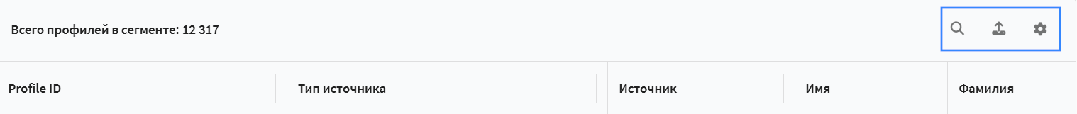 После первого обновления на странице сегмента станет доступна Таблица профилей с текущим составом: