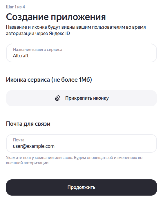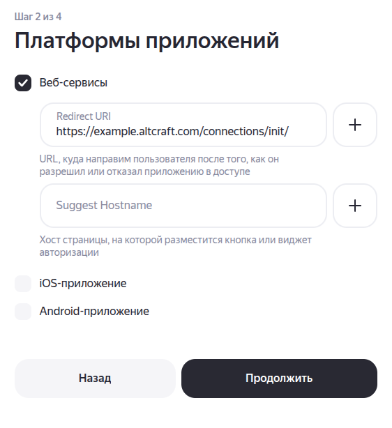 Шаг 1. Регистрация веб-приложения в Yandex