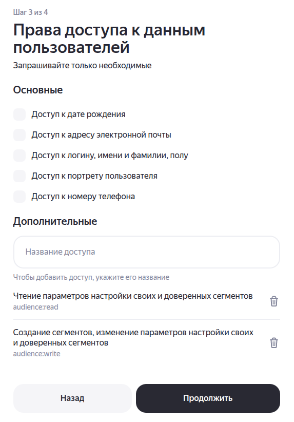 Подключение к Яндекс.Аудиториям™ необходимо для настройки соответствующей интеграции.